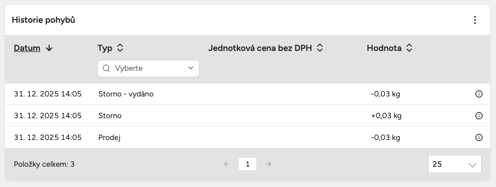 V konečném výsledku je stav skladu snížen o 0,3 kg.