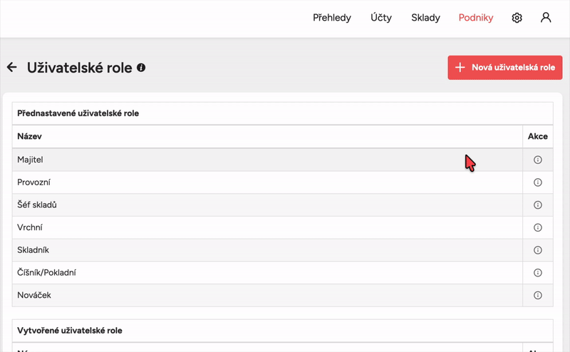 Více o uživatelských rolích najdete v článku Uživatelé.