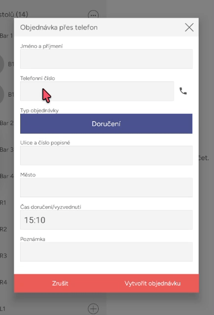 Vytvoření telefonní objednávky