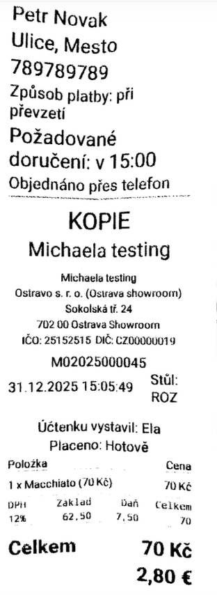 Na účtence také najdete detaily zákazníka a objednávky.