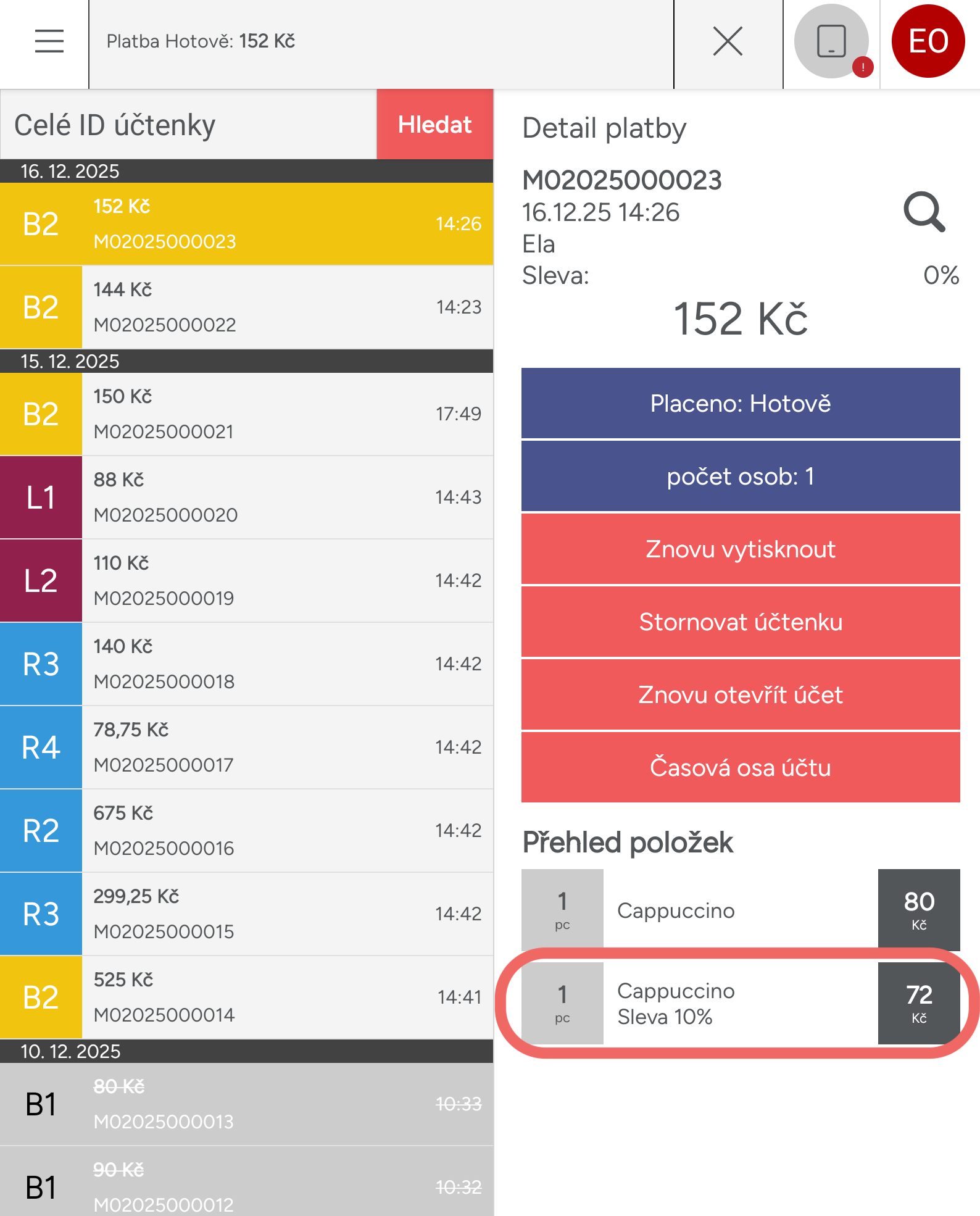 Slevy na položku jsou nově evidovány v přehledu Kontrola storna a slev. Díky tomu můžete snadno sledovat všechny poskytnuté slevy na úrovni jednotlivých položek.