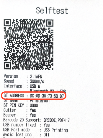 - Záznam na vytištěném papíru obsahuje BT ADDRESS.