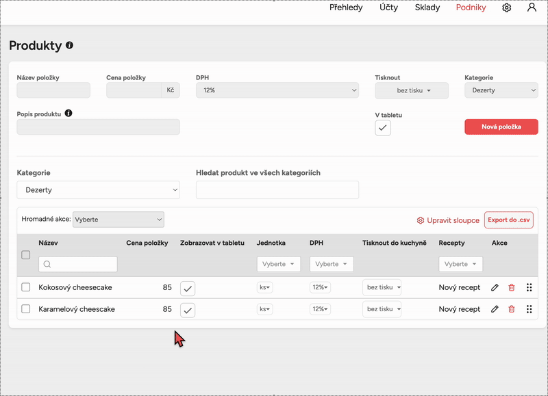 | Tip: Štítky vytvářejte podle typu jídel, akcí, sezónnosti nebo alergenů. Používejte krátké a srozumitelné názvy a stejný štítek používejte konzistentně napříč všemi produkty. |