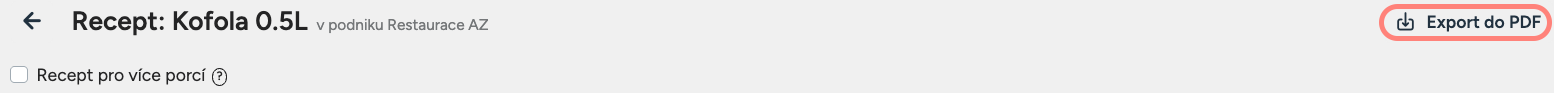 v detailu konkrétního receptu tlačítkem Export do PDF.