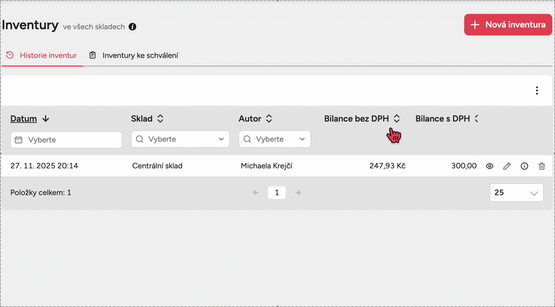Pokud chcete upravit konkrétní inventuru, klikněte na ikonu tužky – inventuru je možné upravit maximálně 45 dní zpětně.