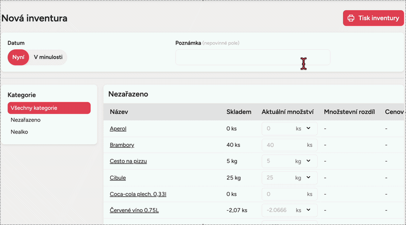 Pokud je to potřeba, můžete k inventuře přidat Poznámku (např. „srovnávací inventura“).