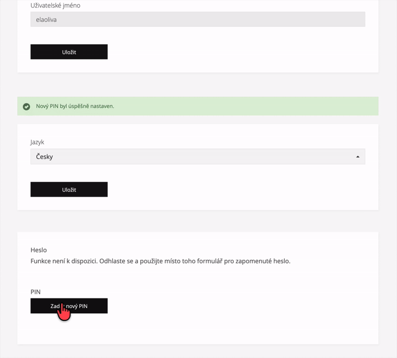 Změnu hesla není možné provést přímo v profilu. Návod pro nastavení nového hesla najdete v článku Zapomenuté heslo.