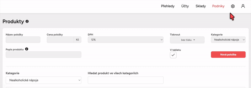 Otevřete sekci Storyous integrace ve webové administraci.