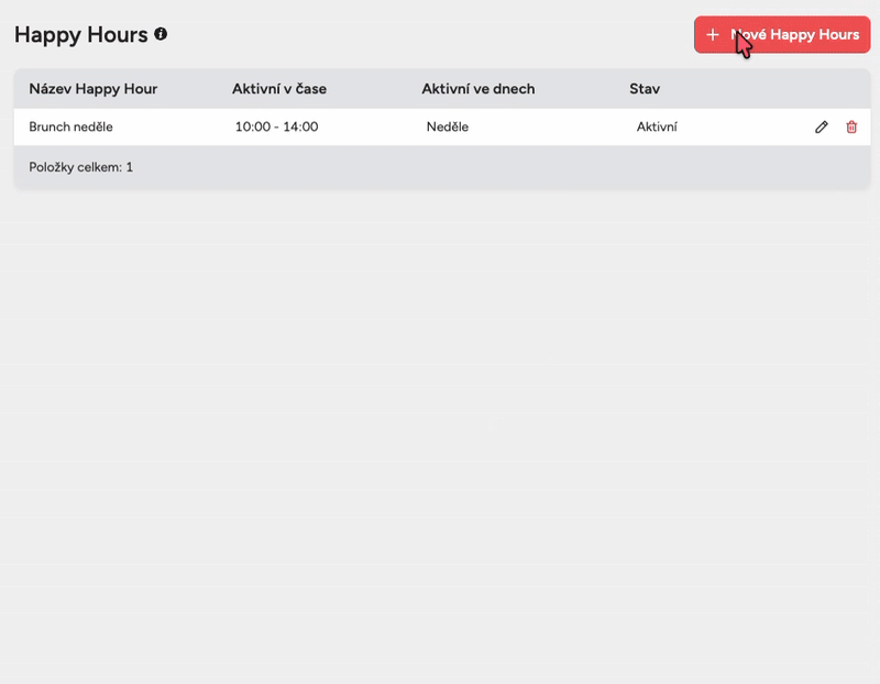 Kliknutím na tlačítko Vytvořit uložíte Happy Hours. Zde se dostanete na seznam Happy hours.