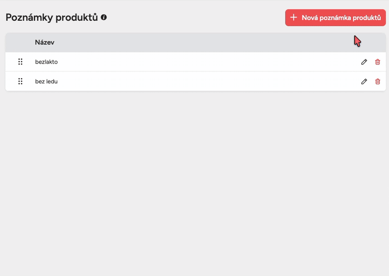 Pomocí tužky můžete upravit již vytvořené poznámky. Odstranit poznámku můžete kliknutím na koš a změnit pořadí podržením šesti teček vlevo od názvu.