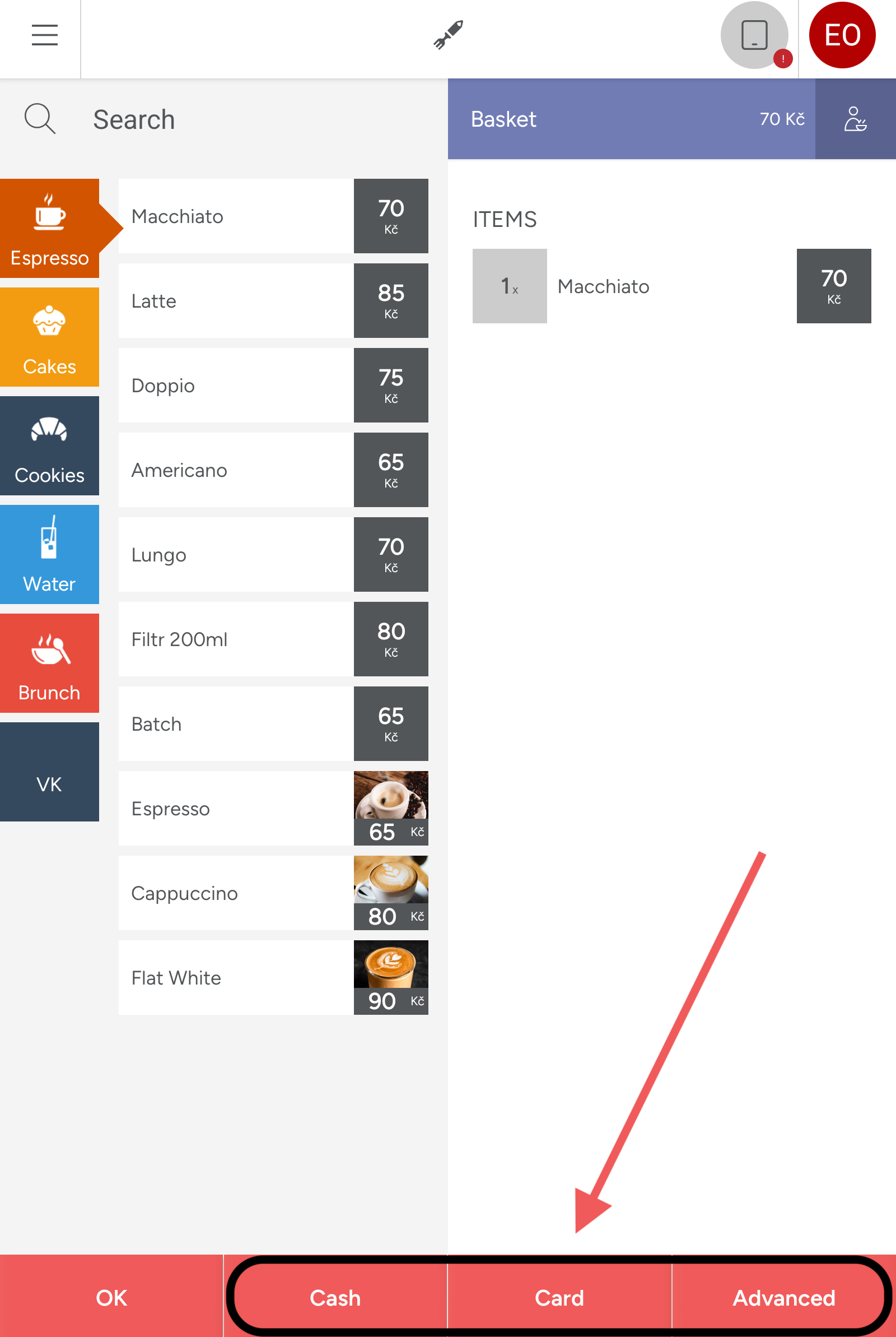 The Storyous system offers the option to enable Fast process of payment. This mode is ideal for retail sales and allows for faster payment completion. In the POS, instead of the Pay separately and Pay all buttons, buttons such as Cash and Card will appear, depending on which payment methods you have set as the first and second.