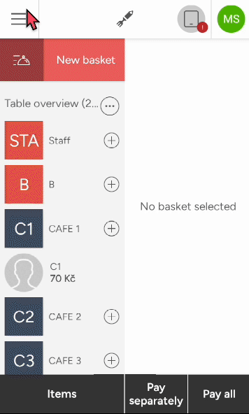 - In the cash register app, click on the Menu ≡ > Settings > Printers.