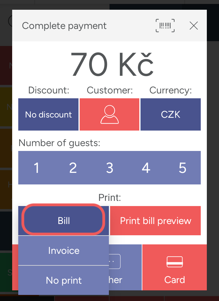 When “Digital” is selected, the account is closed and saved in the system and on the server, but the receipt itself is not printed. To print the receipt, simply click the “Bill” button instead of choosing “Digital.”