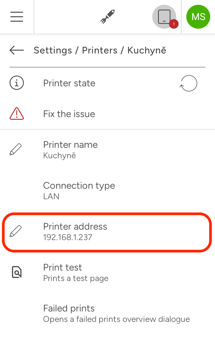 Next, check whether the printer’s IP address has changed and print a self-test from the printer. If you are unsure how to perform a self-test, instructions are available in the manual for your printer type (Xprinter / Star) or below in the article. On the tablet, tap the three lines in the top left → Settings → Printers to see your printer and its IP address. Verify that it matches the IP shown on the self-test.