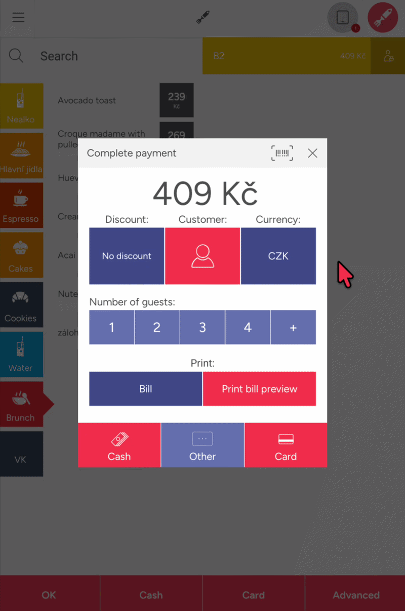 - In the payment completion window, click the CZK icon.