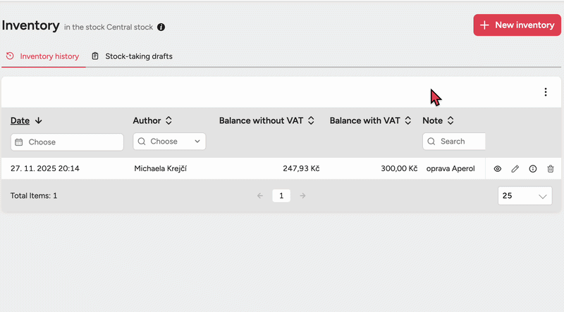 To edit a specific inventory, click the pencil icon – an inventory can be edited up to a maximum of 45 days back.