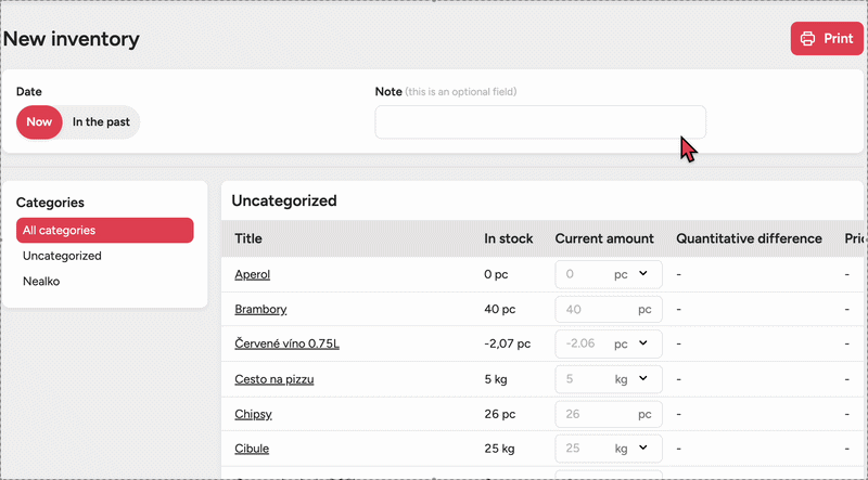 By clicking Show all categories or Hide all categories, you can choose the view that suits you best for doing the inventory.