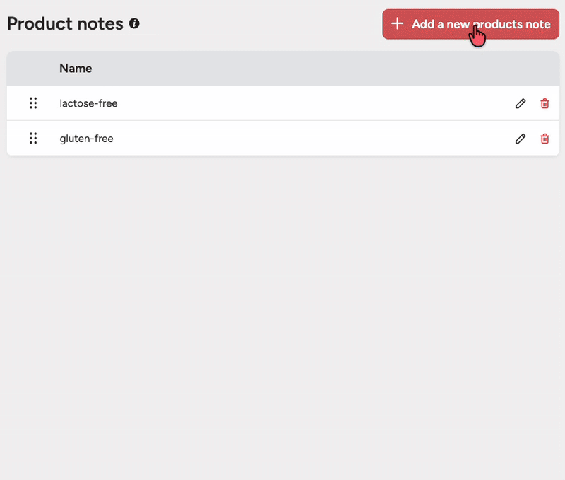 Using the pencil icon, you can edit existing notes. You can delete a note by clicking the trash icon, and change the order by holding the six dots to the left of the name.