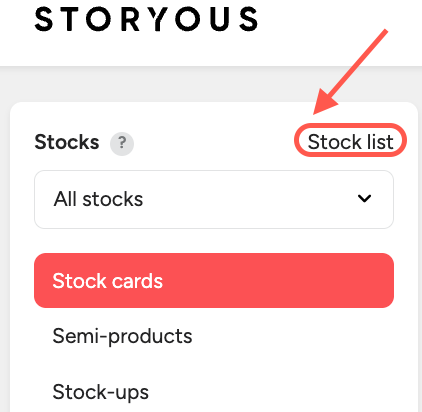 List of stocks button – opens an overview of all stocks, where you create, edit and archive stocks.