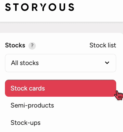 - In the list of stocks, choose the + New stock option.