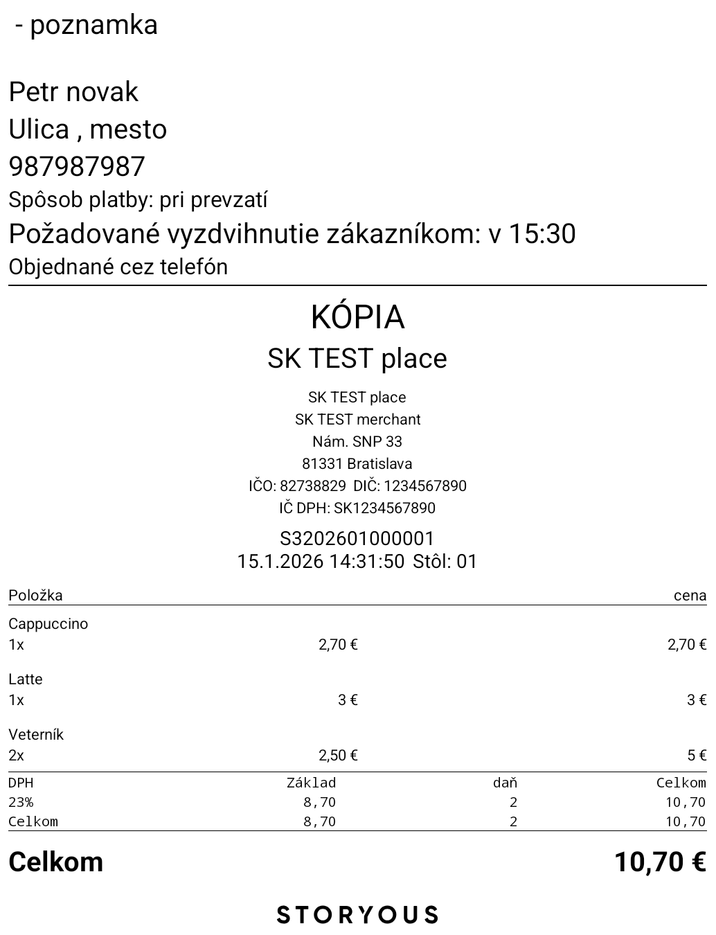 Na účtenke nájdete aj detaily zákazníka a objednávky.