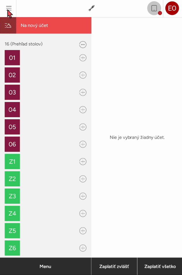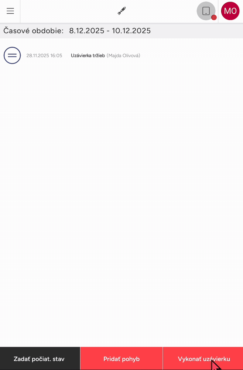 • Tlačidlo Zadať počiatočný stav je dostupné iba po vykonaní uzávierky, akonáhle počiatočný stav zadáte alebo v aplikácii niečo predáte, v dolnom paneli stmavne a nebude možné naň kliknúť.