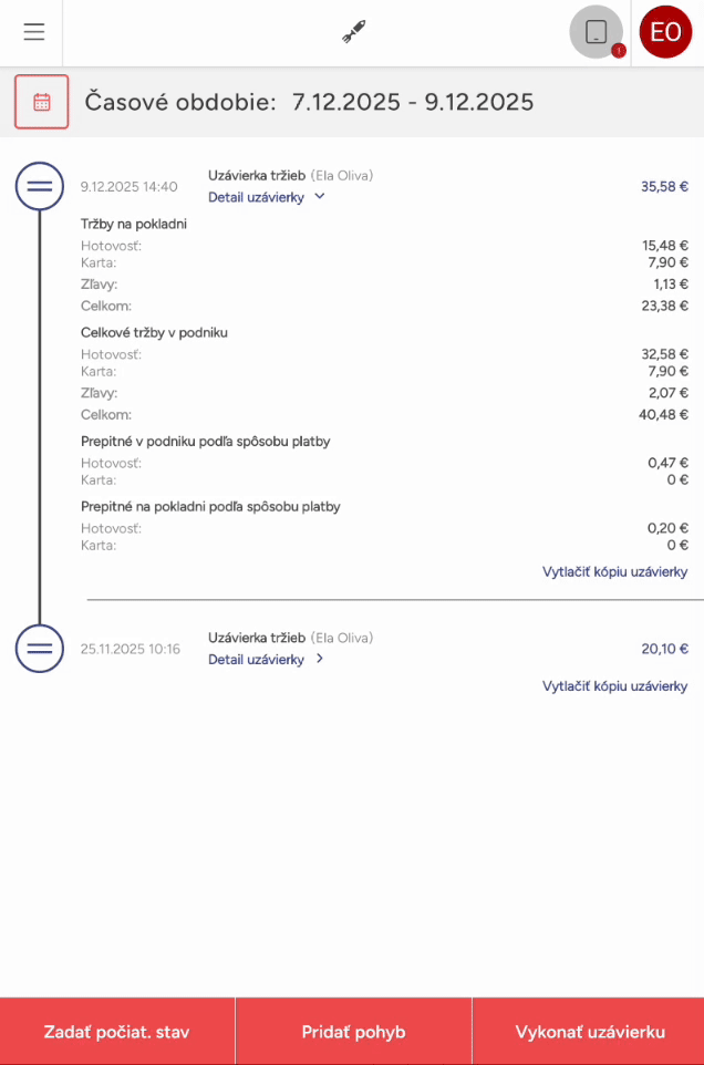 Kliknutím na Detail uzávierky sa vám zobrazia informácie o nej a Vytlačiť kópiu uzávierky vám vytlačí jej kópiu.