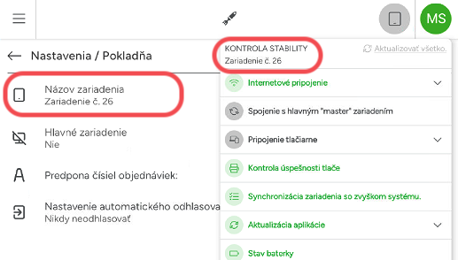 Dôležité: Pred kontaktovaním zákazníckej podpory ohľadom deaktivácie licencie si pripravte sériové číslo svojej pokladne (na zadnej strane zariadenia by mal byť štítok so sériovým číslom) alebo číslo zariadenia z aplikácie Storyous. Číslo zariadenia nájdete na prihlasovacej obrazovke; po kliknutí naň sa vám zobrazí aj sériové číslo pokladnice. Nájdete ho tiež v Kontrole systému (sivý tablet vpravo hore) alebo v Menu → Nastavenia → Pokladňa → Názov zariadenia. |