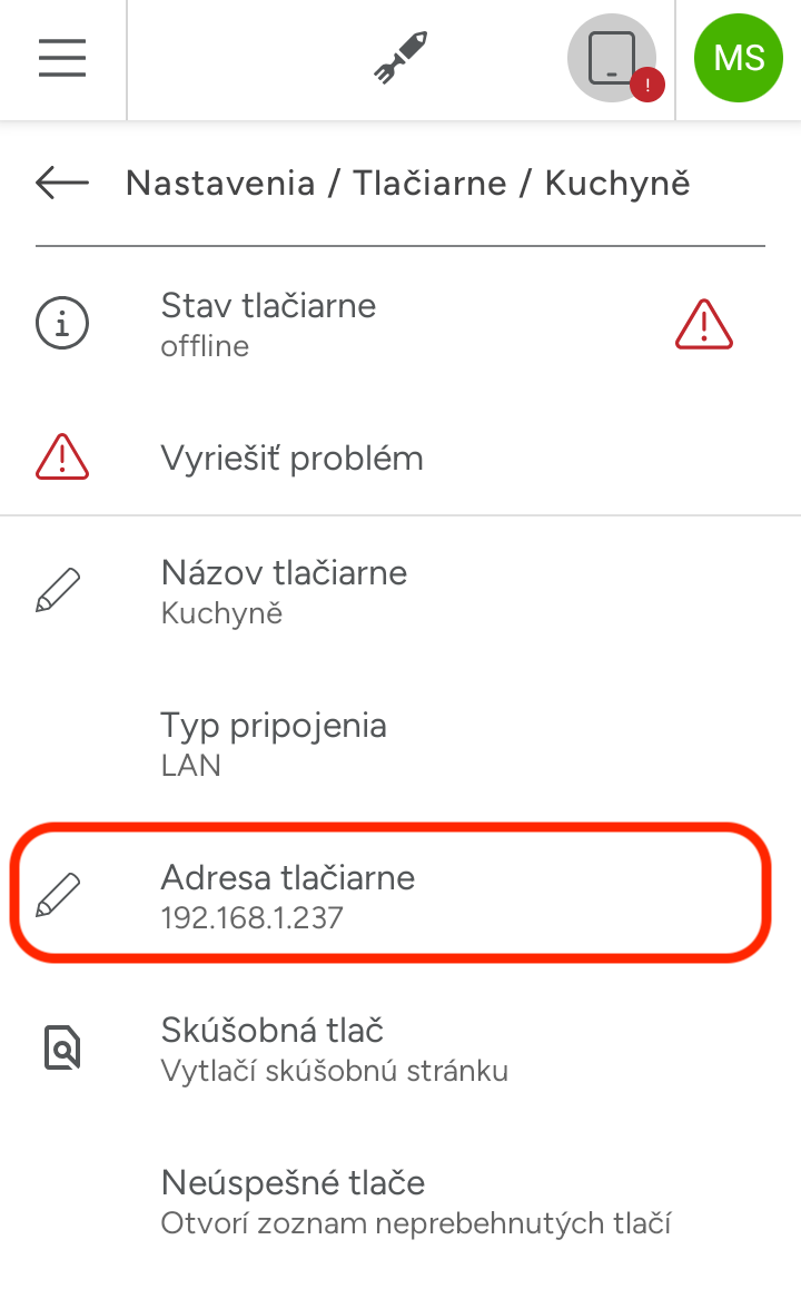 LAN tlačiareň je offline