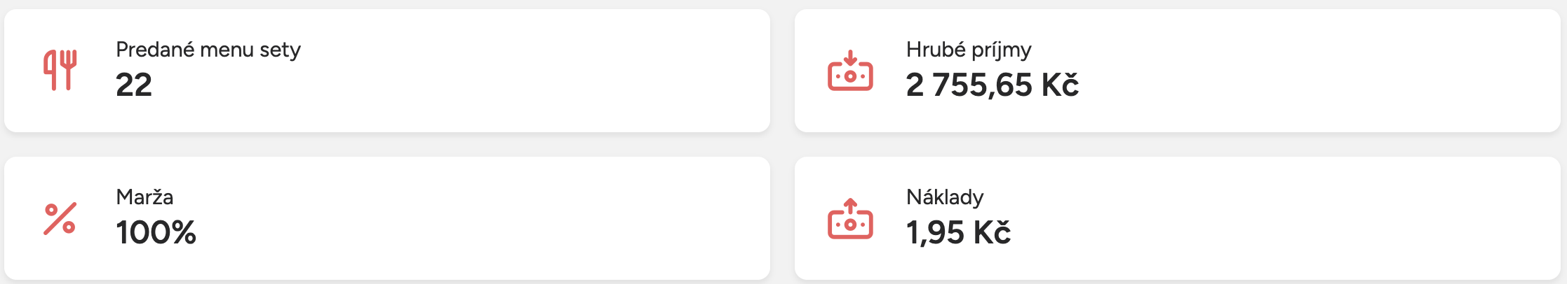 V prehľade nájdete základné ukazovatele, ktoré súvisia s predajom menu setov.