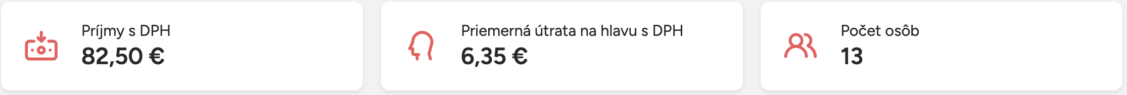 Vzorec: príjmy ÷ počet osôb - Počet osôb – súčet všetkých zadaných počtov osôb na účtoch v danom období
