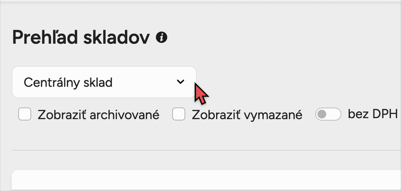 V ľavom hornom rohu vyberte sklad, ktorý chcete sledovať.