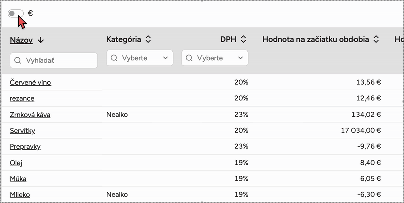 Môžete si prepínať zobrazenie s DPH / bez DPH.
