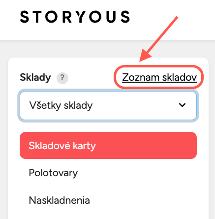 V administrácii prejdite do sekcie Sklady. V hornej ľavej časti obrazovky nájdete: