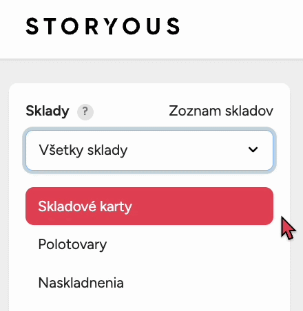 - Všetky sklady – súhrnný prehľad všetkých skladových kariet vo všetkých skladoch.